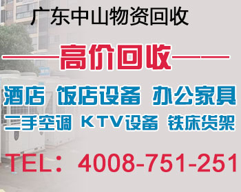 广东中山二手物资回收公司,面向中山市各地区高价回收:酒店饭店设备回收、酒吧ktv音响回收,酒店设备回收,宾馆设备回收,厨房设备回收,烘焙设备回收,办公用品,办公家具,酒店餐厅,酒吧清吧ktv音响,浴场、会所物资回收,制冷设备回收、空调,中央空调,电脑回收,水吧设备回收;“真诚合作、以信经营、价高同行、致力环保事业”的经营理念,本公司以优的价格,快的看货速度现金收购你的包袱,为你解决库存之忧。我们力求为您减少中间环节、以终端商价格向您直接收购,力求“变废为宝、环保到家、创收双赢”!欢迎来电咨询!4008-751-251(